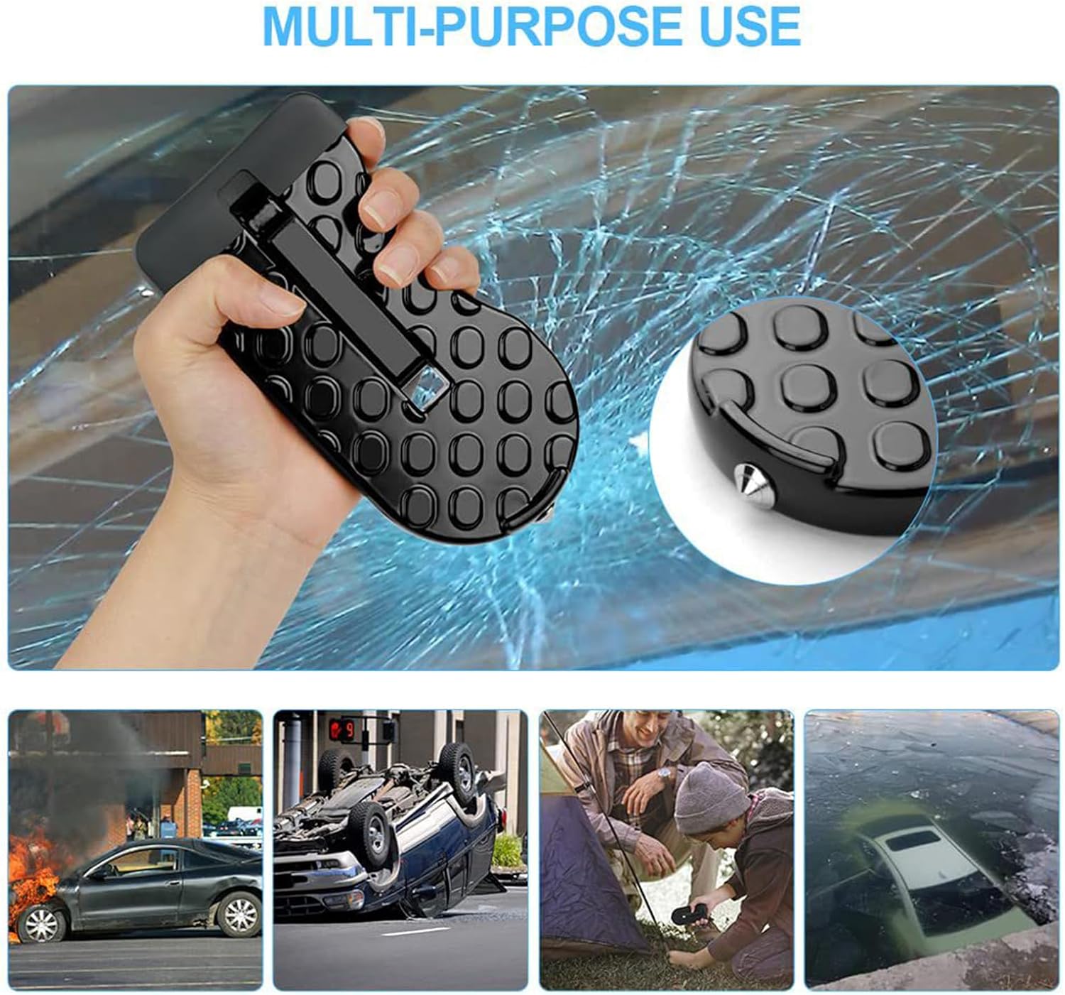 This compact, aluminum-alloy door step supports 440 lbs, lets you easily reach car roofs, doubles as a window breaker/anti-slip device, and installs in seconds.
