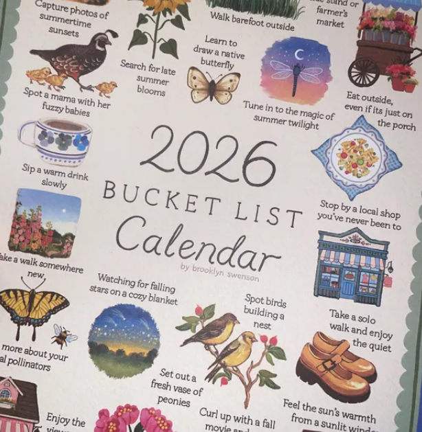 2026 bucket list calendar each month features a hand-illustrated artwork that captures the essence of the season, from blooming gardens in April to sun-drenched picnics in July. A visual celebration of nature's ever-changing beauty and the simple joys that each month brings.