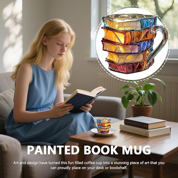 📚 Stained Glass Book Stack Mugs: 3D Artistic Book-Themed Drinkware ✨
