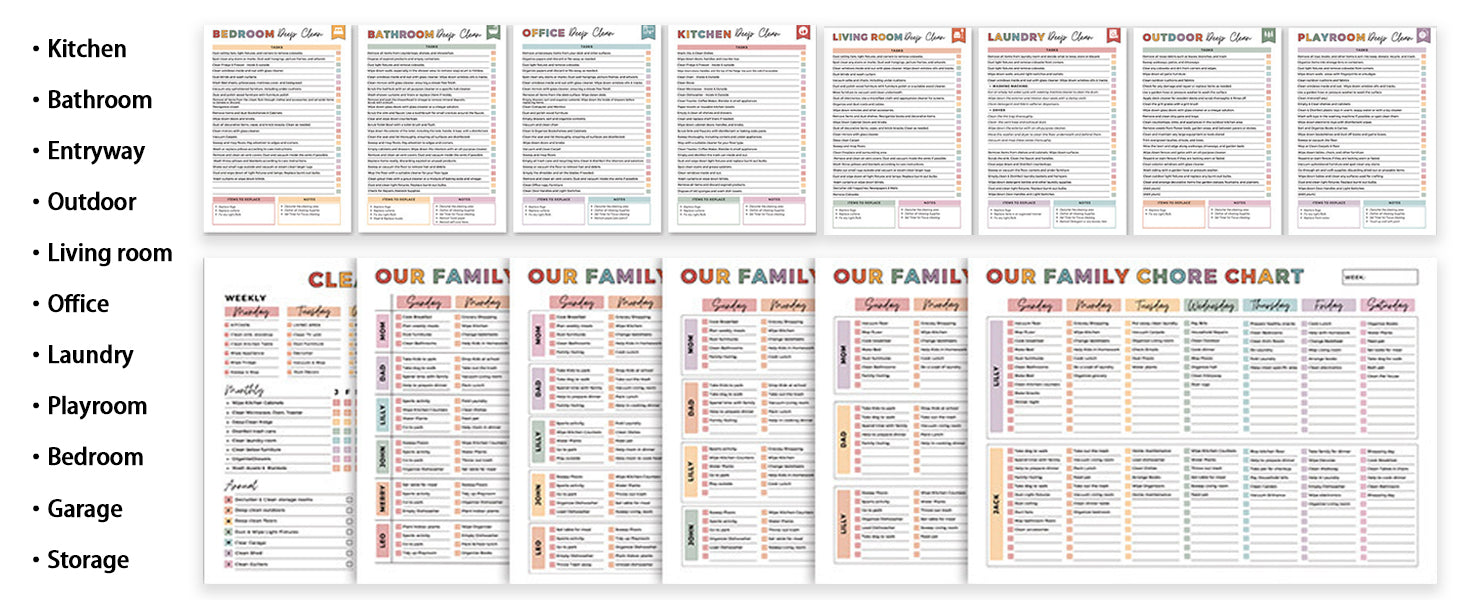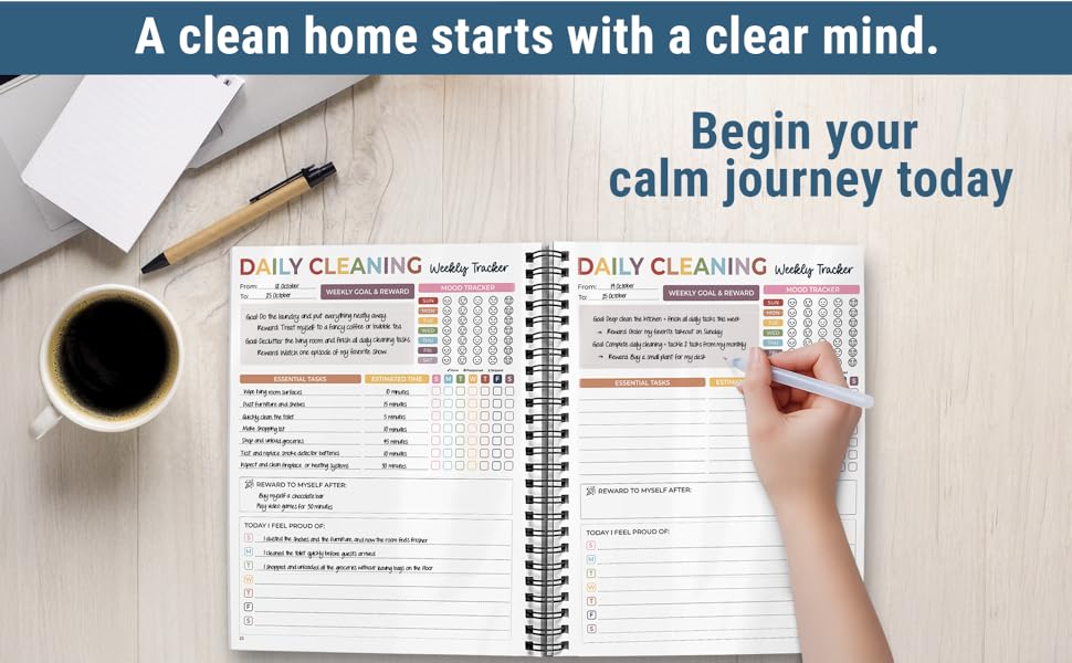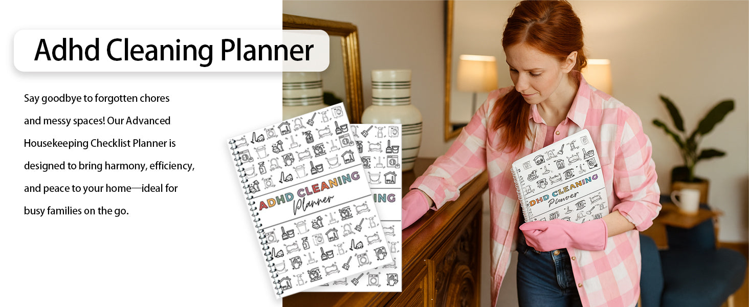 This planner lets you track daily/weekly cleaning tasks for an entire year— with clear, structured layouts (perfect for ADHD women) to break down chores, mark progress, and stay on track without feeling overwhelmed. The step-by-step checklists keep you focused, turning chaotic cleaning into a manageable, satisfying routine.