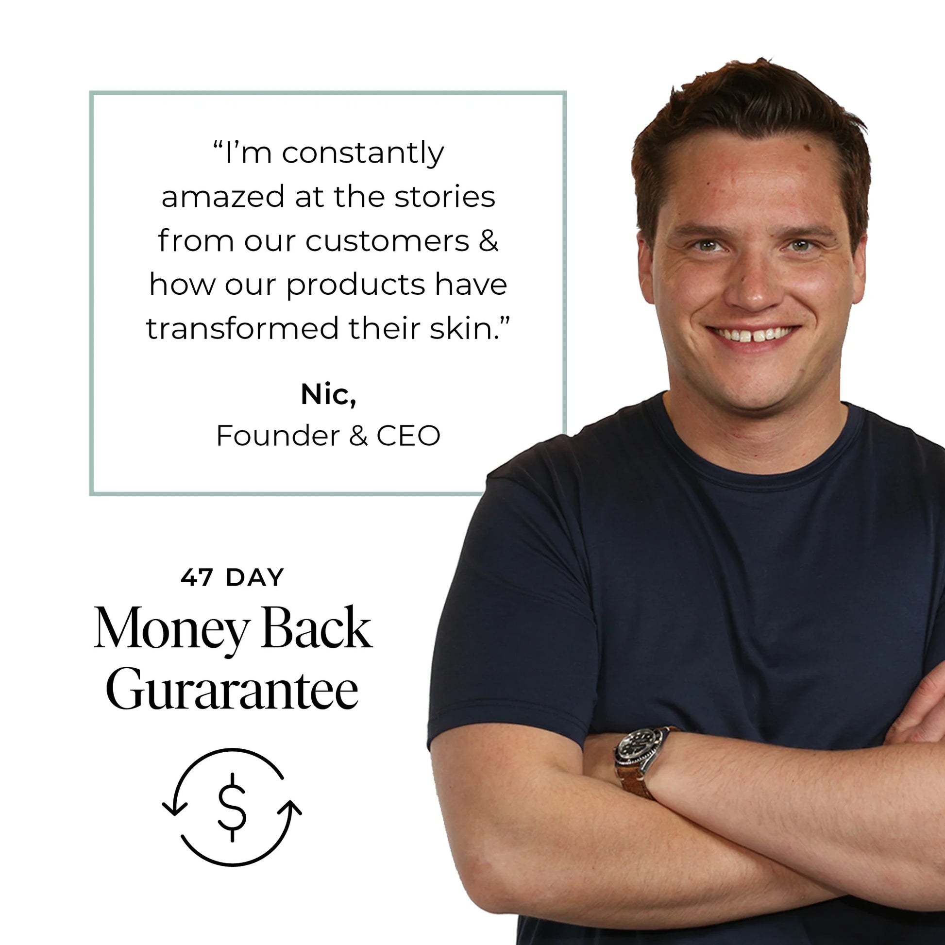 Most people see improvements in blemishes and light scaring within four to six weeks, but deeper scars might take a little longer. Consistency is key and we recommend using both morning and night.