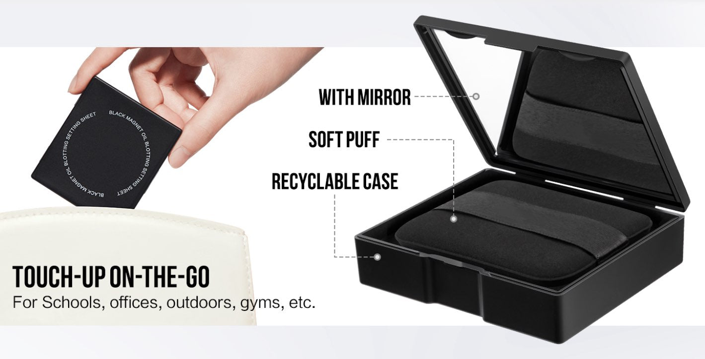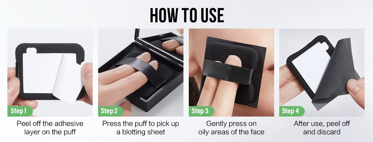 The blotting papers for face with mirror and soft puff for easy to use. The portable design allows it to be easily placed in a wallet, pocket, or makeup bag. Ideal for travel, office, and daily touch-ups.