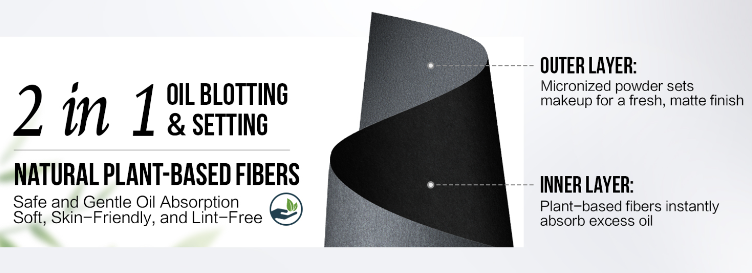 The face blotting sheets made with sustainably sourced soft conifer fibers that gently absorb excess oil. the face oil blotting sheets are skin-friendly, residue-free, and gentle enough for all skin types.