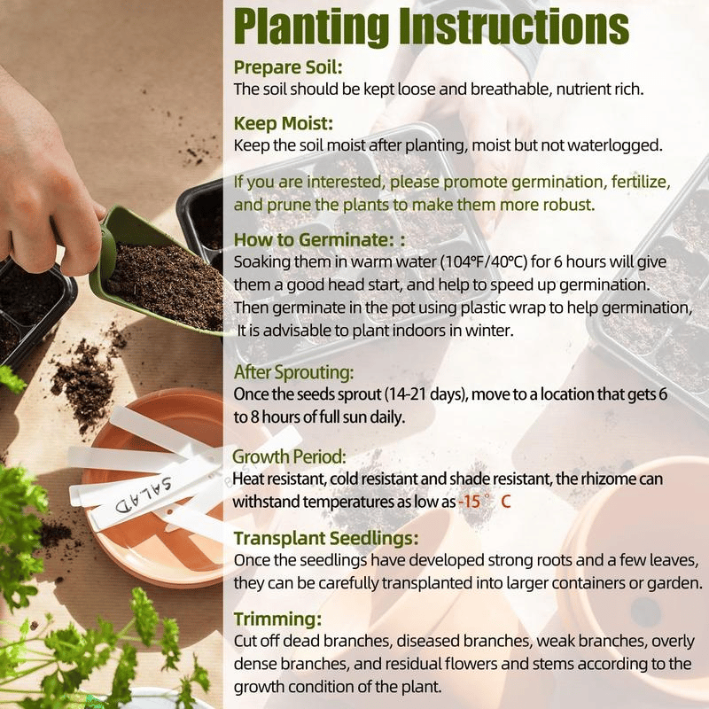 2️⃣ Sowing: Plant seeds ¼ inch deep in moist, well-draining soil, preferably in trays or pots.