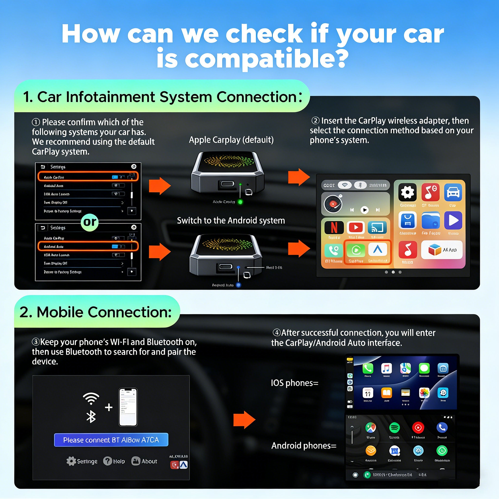 - ✅ If Android Auto: Use the reset pin to switch the adapter to Android Mode first (indicator turns Blue), then connect