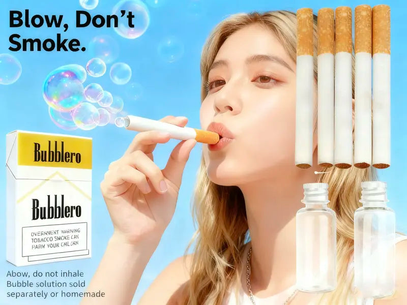 Ever wanted to “light up” but make bubbles instead of chaos? This “cigarette” is actually a bubble wand—dip it in the tiny solution bottle, blow slow, and watch your bad mood turn into a cloud of silly bubbles. (No ashtrays required, just vibes.)