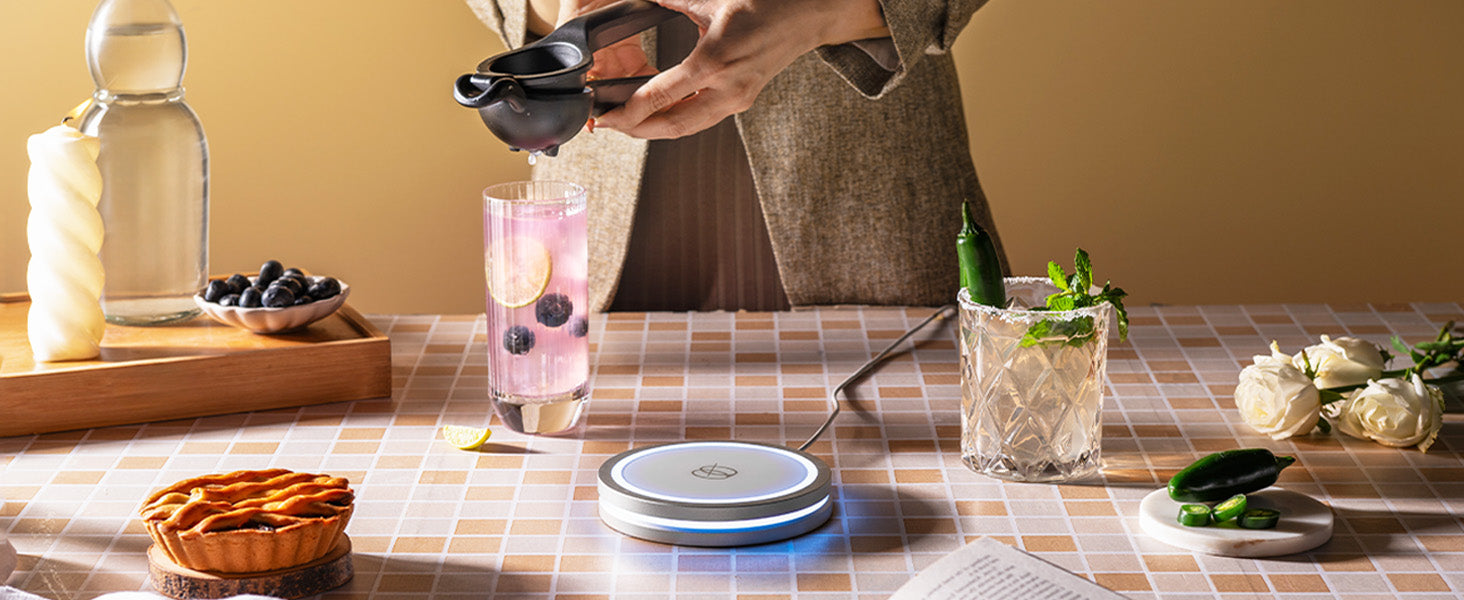 YOOYAPP combines cutting-edge AI technology with sleek aluminum design to revolutionize home mixology. Connect the coaster to your smartphone or tablet via Bluetooth for access to personalized cocktails. With advanced AI algorithms and experiential lighting, enjoy unique cocktails tailored to your taste.