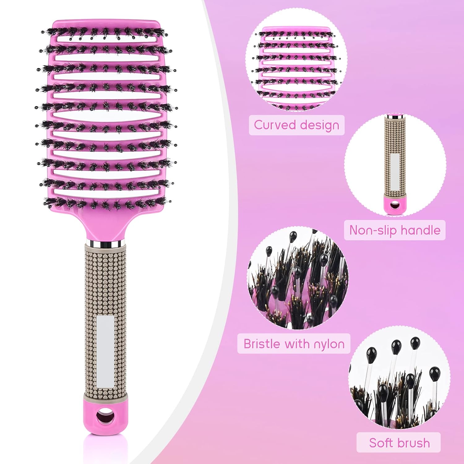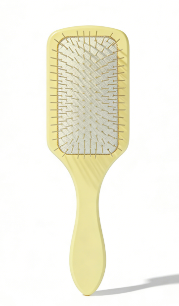 Our brush is designed with a curved and vented paddle, naturally aligning to the shape of the head distributing pressure evenly without digging in like flat brushes, and making it easy to blow dry hair while brushing, without overheating.