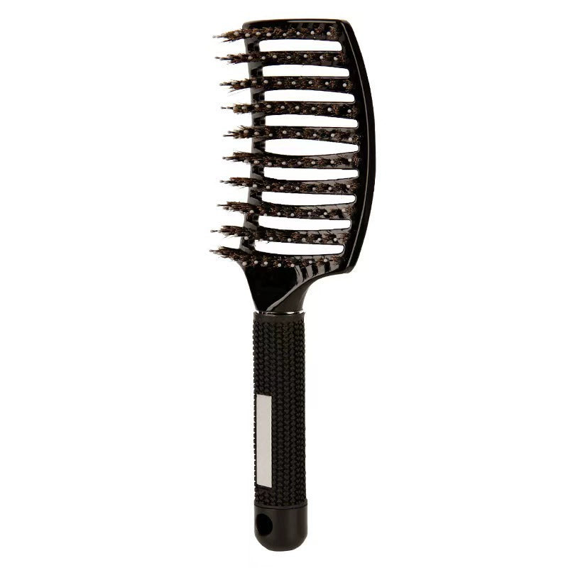 Our brush combines five different brush types into one innovative design: a vented paddle brush, a comb, boar bristles, long nylon brush pins with soft micro tips, and a wide comb.