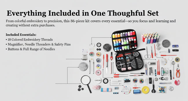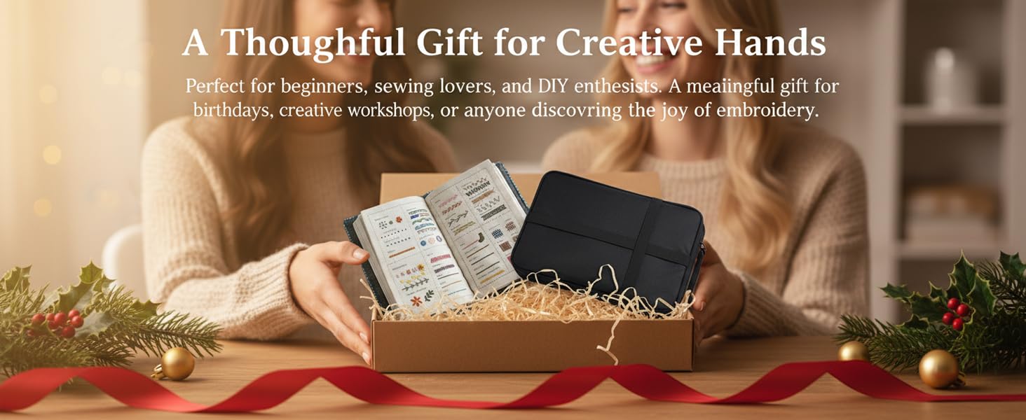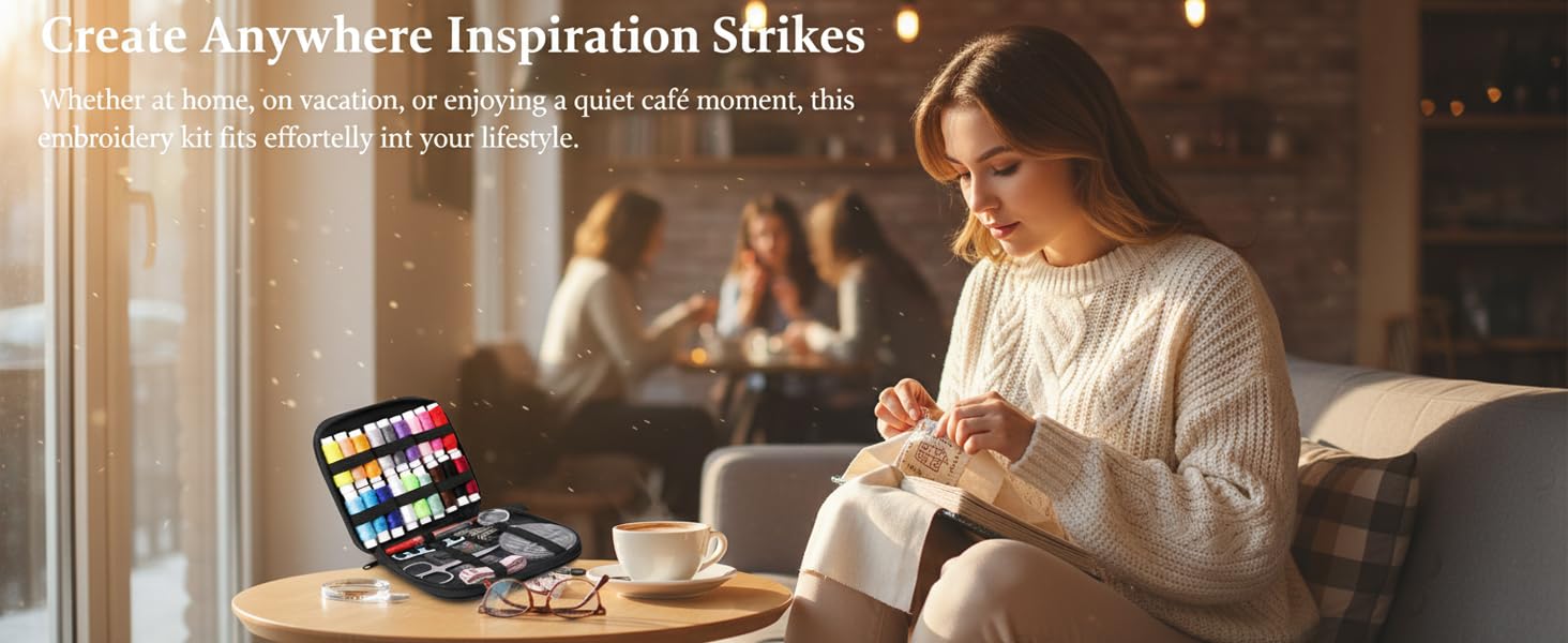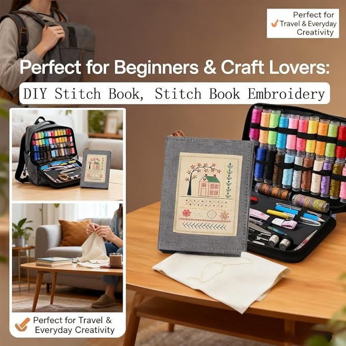 All-in-one set fits right in your bag—ideal for stitching on trips, at home, or even at cafes. The built-in stitch book guides beginners through projects, while the 86-piece tool kit covers every creative or mending need.