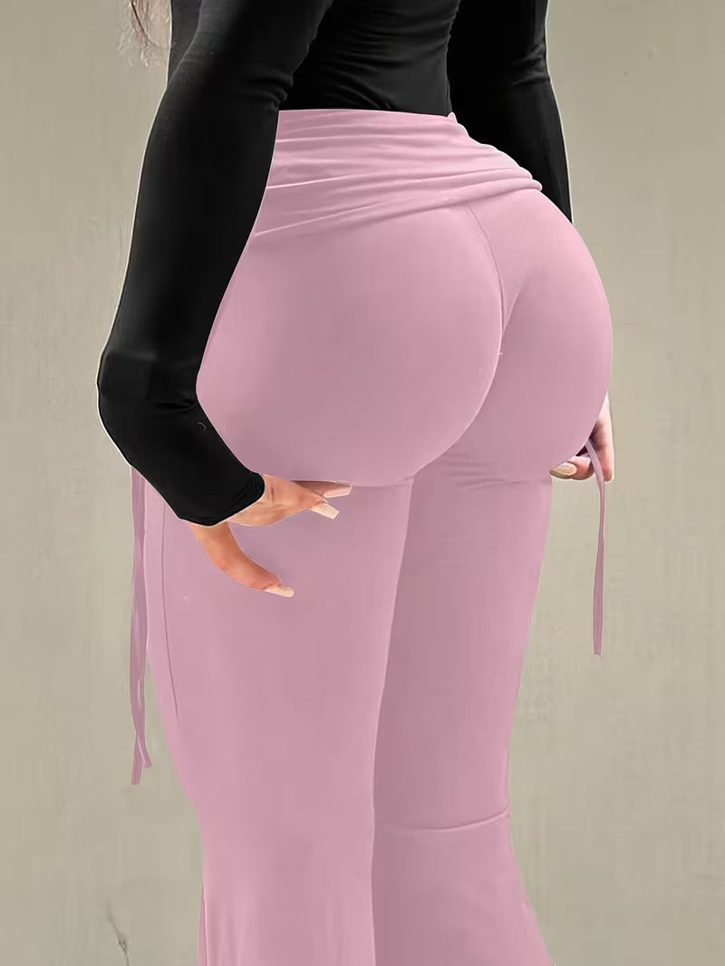 Flared pants design to shape the calves and create a slimming visual effect.