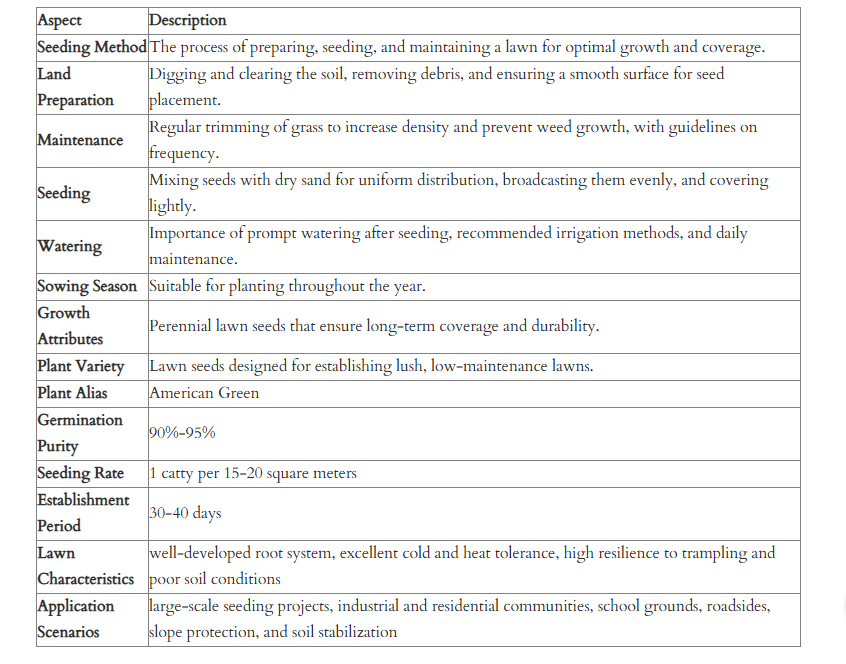 | Growth Attributes | Perennial lawn seeds that ensure long-term coverage and durability. |
