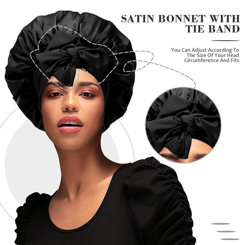 Our satin bonnet is designed to be the perfect solution to the problem of falling off easily while sleeping. The bonnet comes with straps that you can adjust according to the size of your head circumference and fits most women and girls, even if you are an active sleeper you can fix it in the right position.