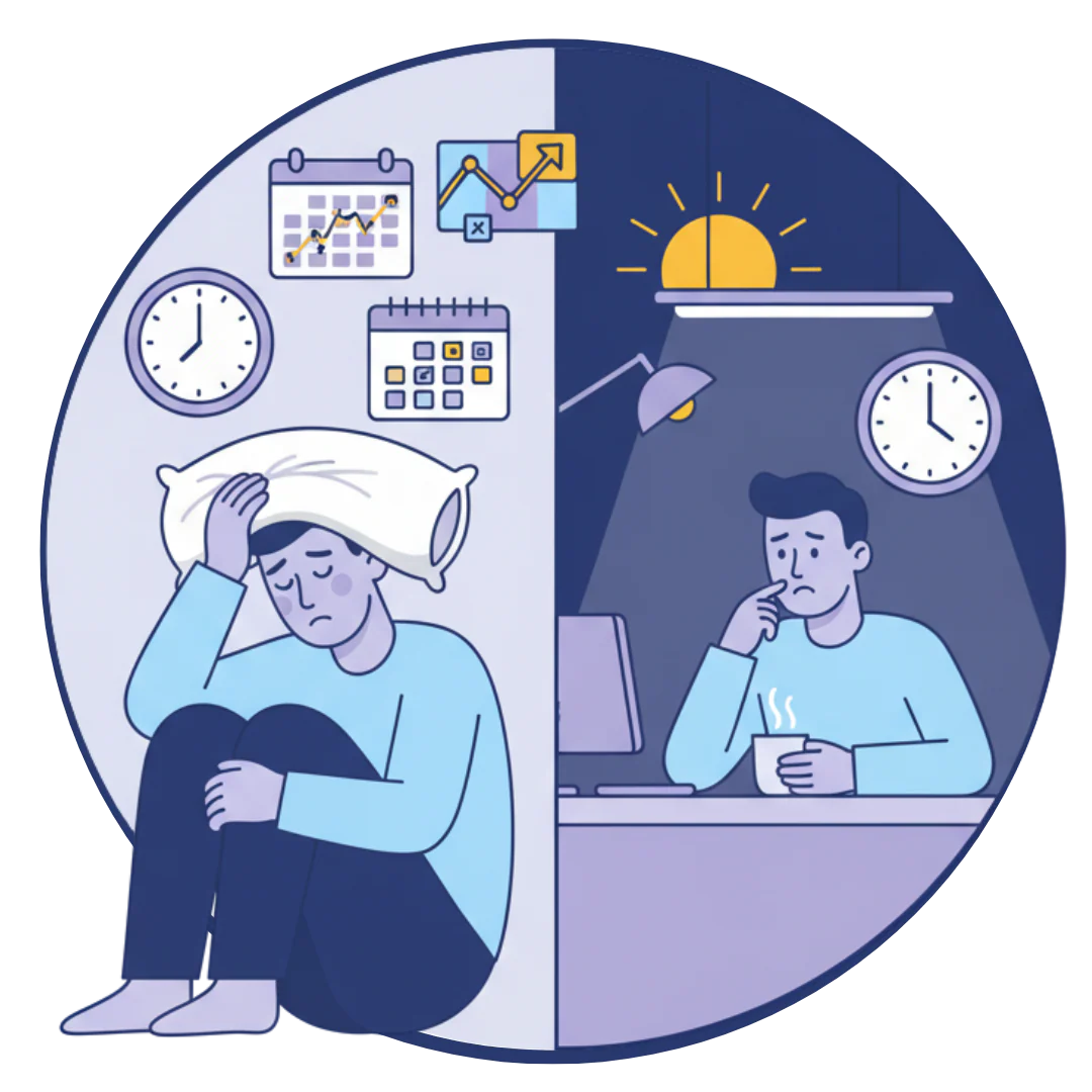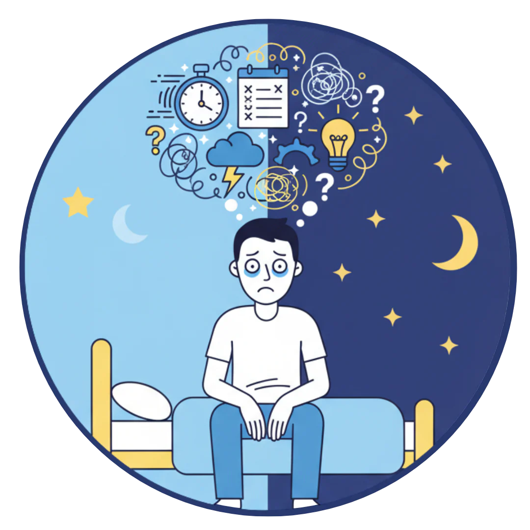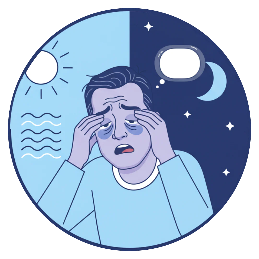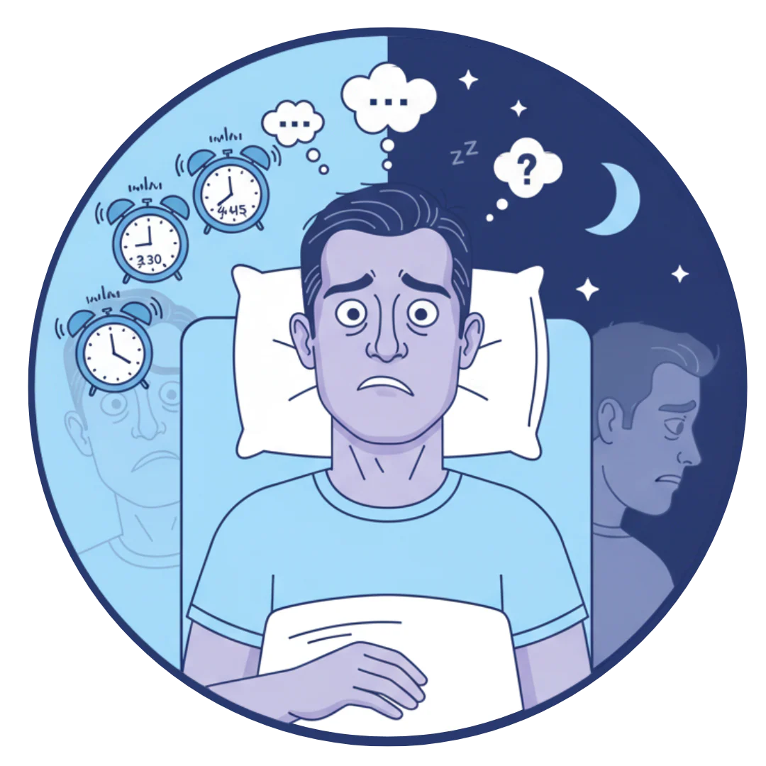 Insomnia, difficulty falling asleep, frequent nighttime awakenings, nighttime anxiety, light sleep, chronic fatigue, circadian rhythm imbalances, jet lag, stress affecting sleep, and for those who cannot swallow pills.