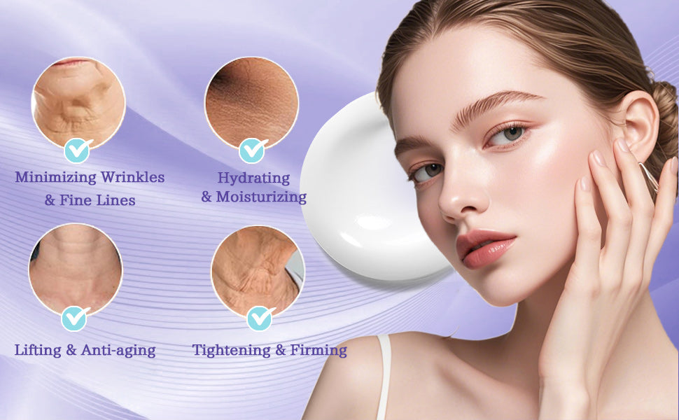 Say goodbye to sagging skin! The concentrated Collagen Peptides in our cream work overnight to plump and firm your skin. It targets fine lines and wrinkles, improving elasticity for firmer-looking skin on your face, neck, arms, and body.