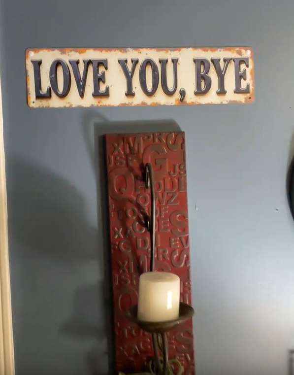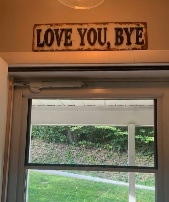 The "Love You Bye" sign is a delightful way to express love and affection as you leave your home.