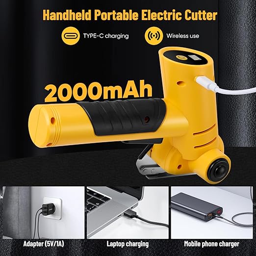 This wireless, Type-C rechargeable handheld cutter (2000mAh battery) works via adapter, laptop, or phone charger—portable and convenient for on-the-go cutting tasks.