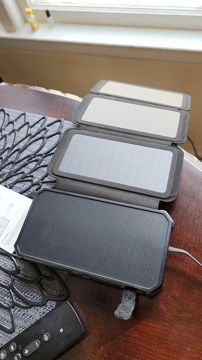 Yes! The solar panels are foldable (like a book) and lightweight, so you can tuck them into a backpack or strap them to your bag while hiking. They’re not detachable, but the compact folded design (10x7 inches) makes them easy to transport.
