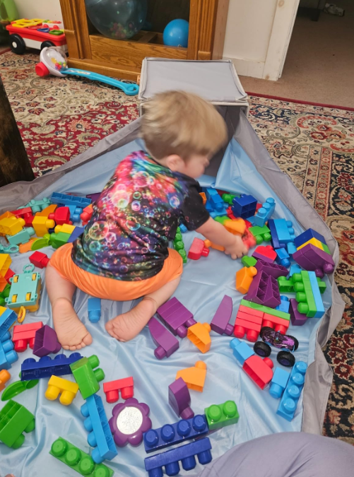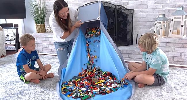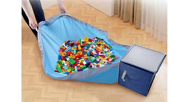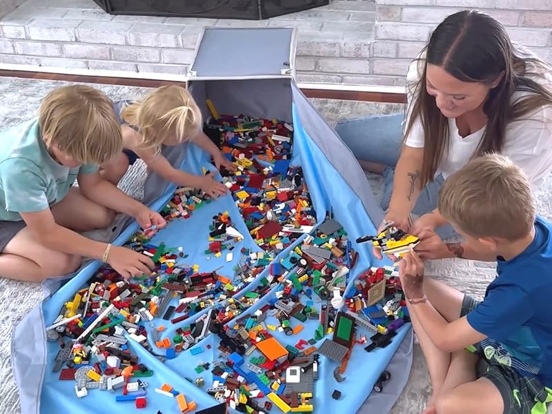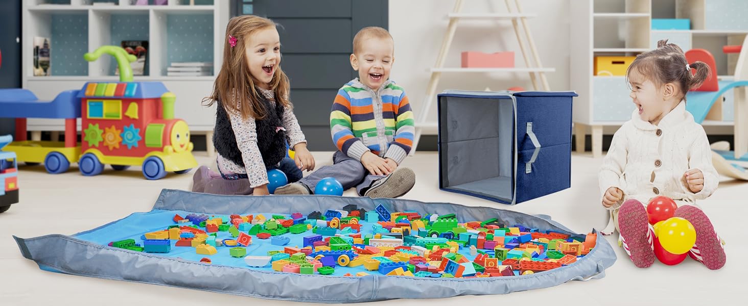 - Use the play mat to encourage creative play with building blocks or bricks and clean up in seconds after playtime.