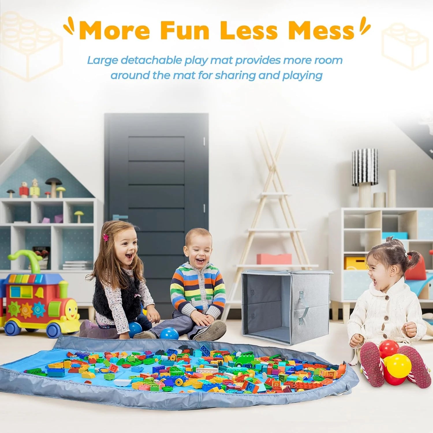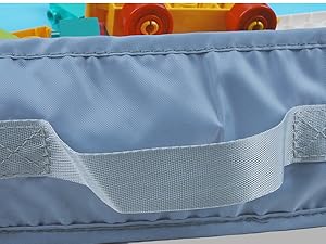 A3:The play mat has sturdy handles. After playtime, simply gather the corners using the handles and tip all the toys directly back into the attached storage cube.