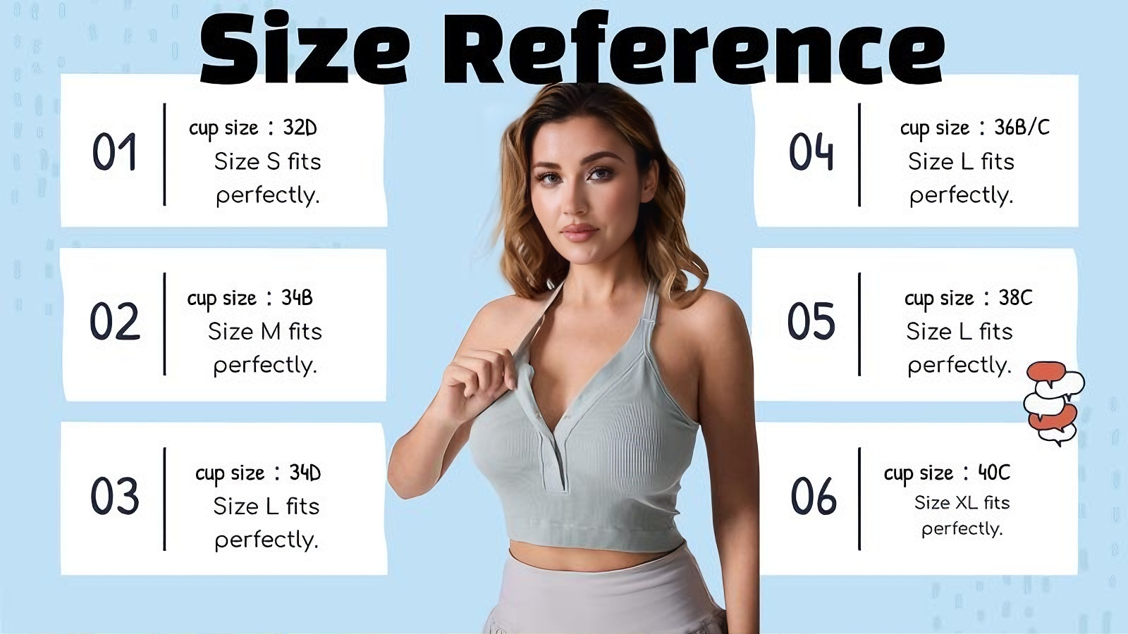 It’s typically available in standard sizes (S/M/L/XL/XXL, etc.) — the ribbed fabric offers stretch, but we recommend checking the size chart for your bust measurements for the best fit.
