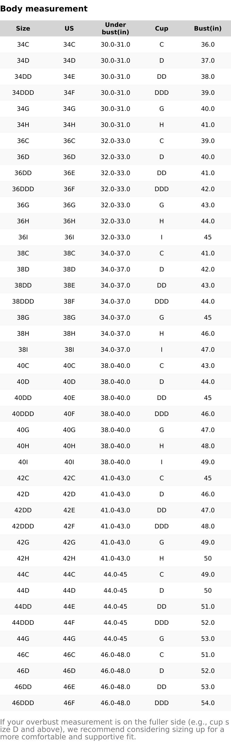 Refer to our size chart (matches your regular bra cup size). The adjustable straps + back closure let you tweak the fit for comfort. Most customers say the sizing runs true to size.