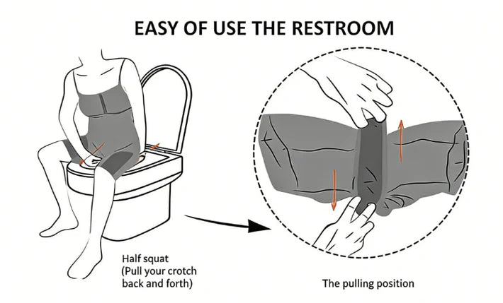 A: The innovative overlapping gusset design makes it easy and convenient for bathroom breaks.