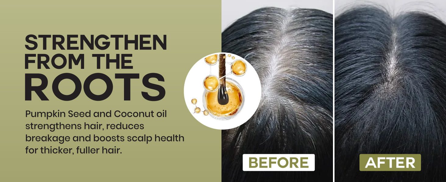 It helps nourish the scalp, support healthy hair growth, and reduce the appearance of hair thinning over time.
