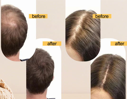 This hair growth oil delivers noticeable results: it fills in thinning areas, reduces scalp visibility, and transforms sparse hair into thicker, denser locks (as shown in the before-and-after photos).
